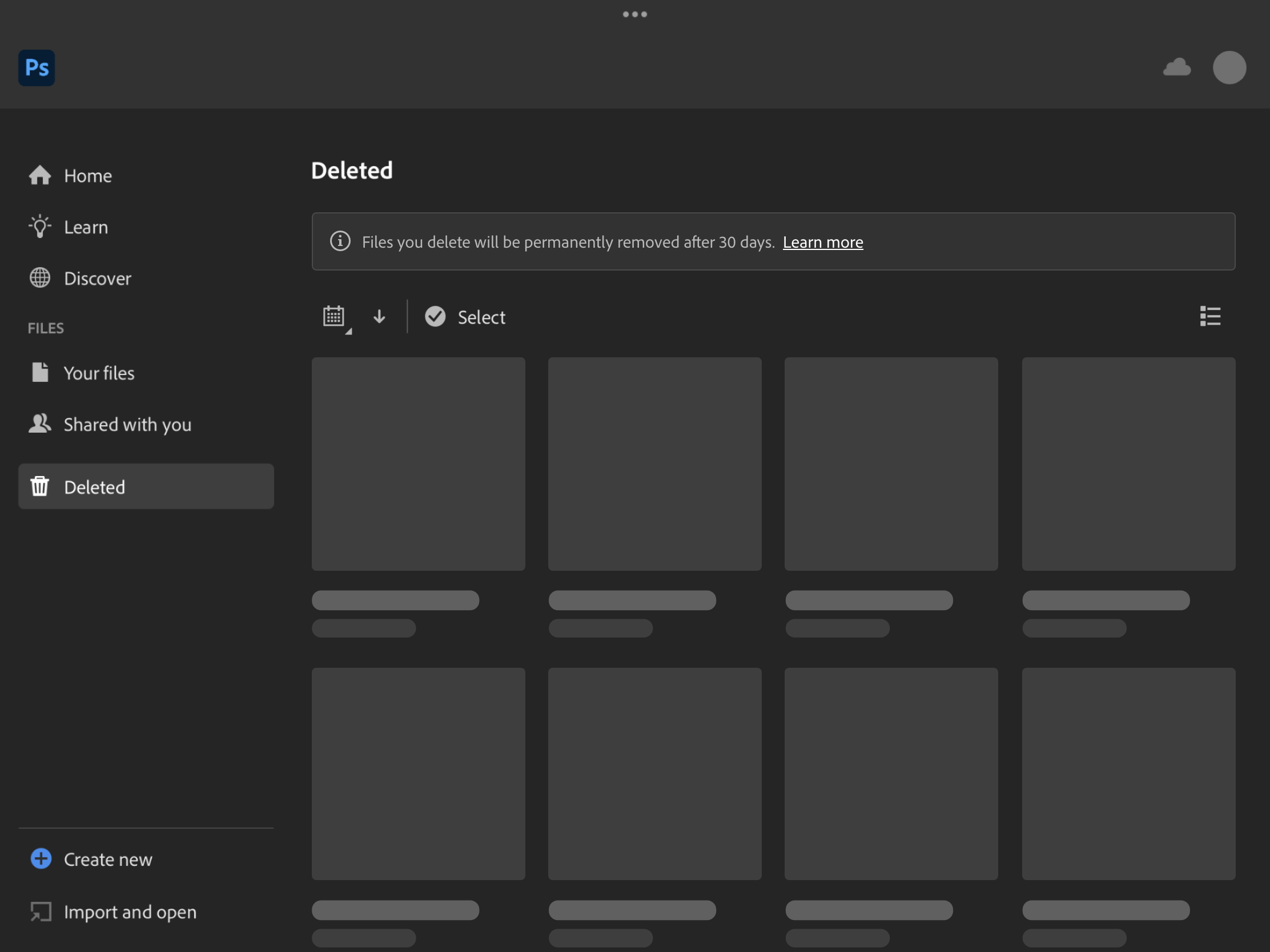In Photoshop, deleted files are automatically cleared after thirty days, aiding users in better managing storage space of their Creative Cloud.